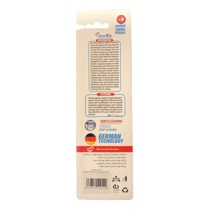 مجموعه مسواک اسپارکل مدل +S9 با برس متوسط بسته ۲ عددی به همراه نخ دندان اسپارکل مدل کمانی ۳۷ عددی، راهکاری کامل برای مراقبت روزانه از دهان و دندان است. برس متوسط مسواک +S9 پلاک و ذرات غذایی را مؤثر پاک میکند و طراحی ارگونومیک آن استفاده راحت و دسترسی آسان به تمام سطوح دندان را ممکن میسازد. نخ دندان کمانی ۳۷ عددی به تمیزکردن فضای بین دندانها و حفظ سلامت لثه کمک میکند. بستهبندی مشکی و مجموعه اقتصادی، استفاده روزانه و خانوادگی را ساده میکند.